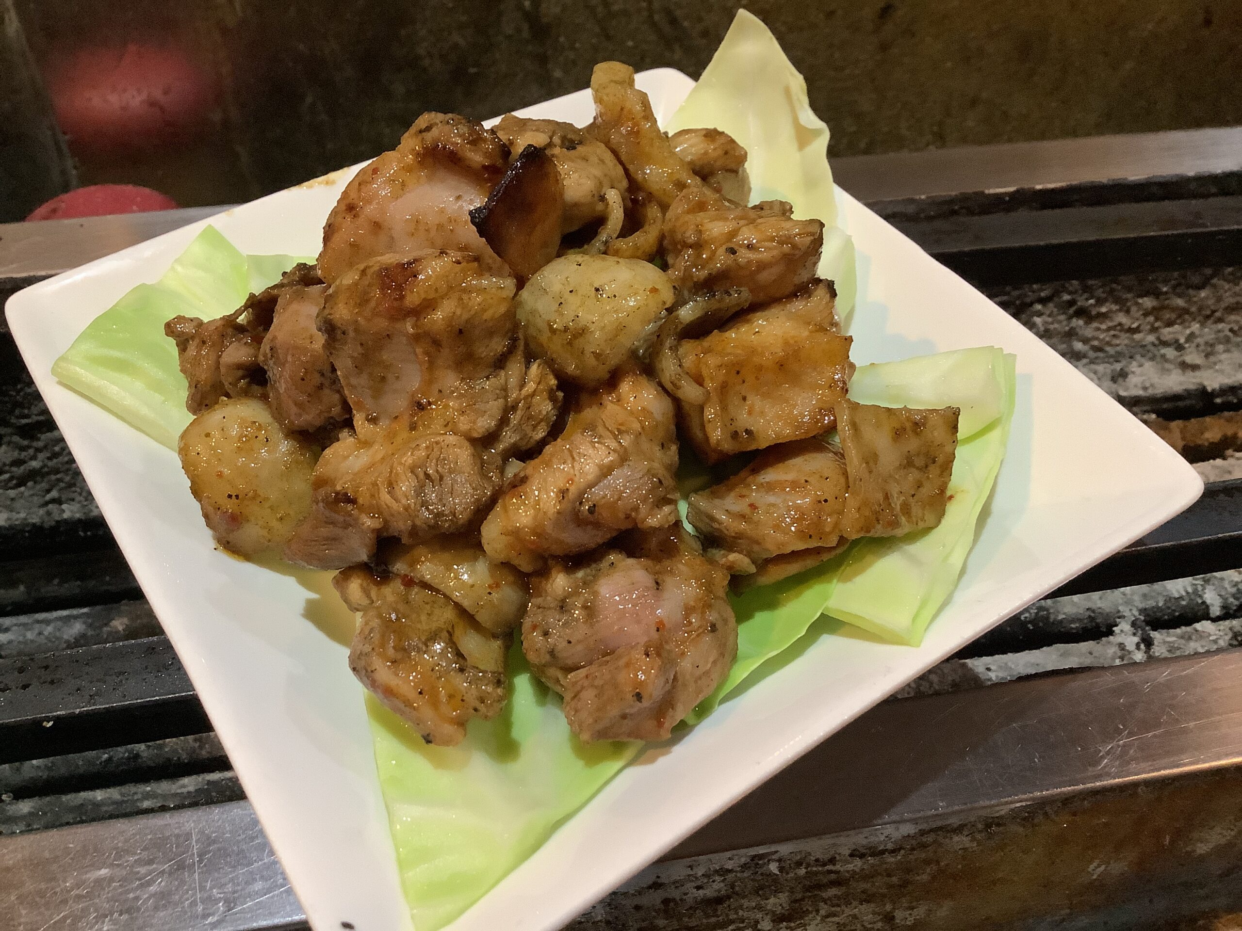 主役の薩摩地鶏ムネ肉は、あっさりしていながら旨味が濃く、キムチの辛味とよく馴染みます。肉は一口大にカットして下味を付け、特製のキムチダレに漬け込んだ後、炭火でじっくりと焼き上げます。外側は香ばしく、内部はしっとり。キムチの辛味と地鶏の旨味が混ざり合い、一口ごとに深い満足感を生み出します。